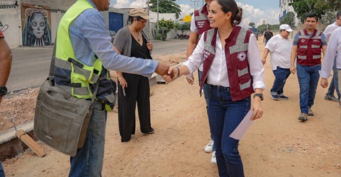 Comentó que entre las obras destacadas, se encuentra la pavimentación de la calle Págalo, entre las avenidas Chac Mool y Marabú, que ya cuenta con un avance del 83 por ciento, la cual no solo contempla la construcción de banquetas con líneas podotáctiles, rampas y señaléticas, sino también el mantenimiento de los pozos de absorción existentes y la construcción de nuevos, para evitar encharcamientos en la calle.